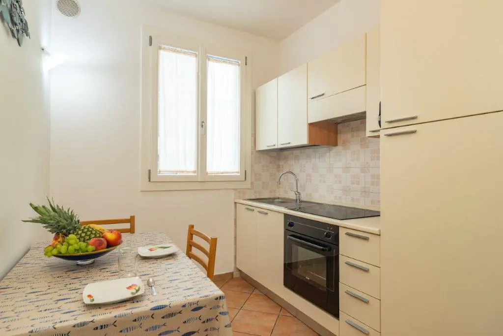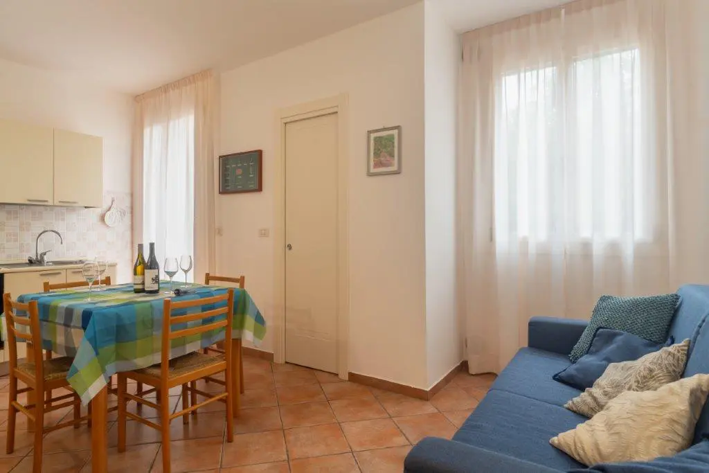 Bilocale situato al piano rialzato, composto da: soggiorno con angolo cottura e divano letto matrimoniale, bagno con doccia, camera da letto matrimoniale.