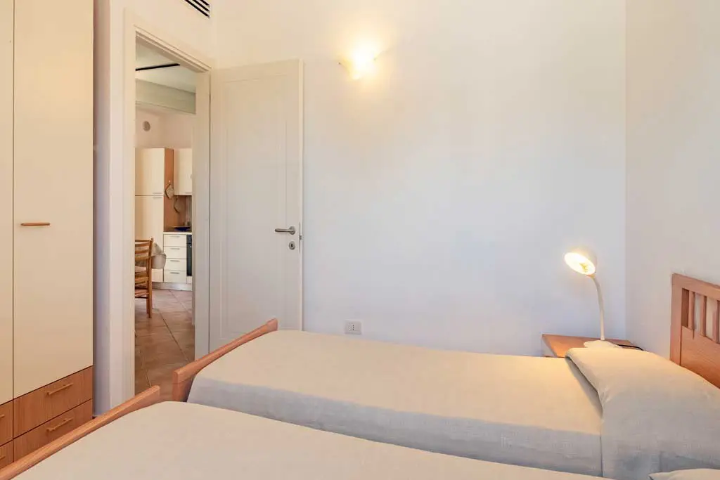 Trilocale situato al primo piano, composto da: ingresso, soggiorno con angolo cottura e divano letto matrimoniale, bagno con box doccia, camera da letto matrimoniale, camera doppia con due letti singoli a castello, balcone e terrazzo.